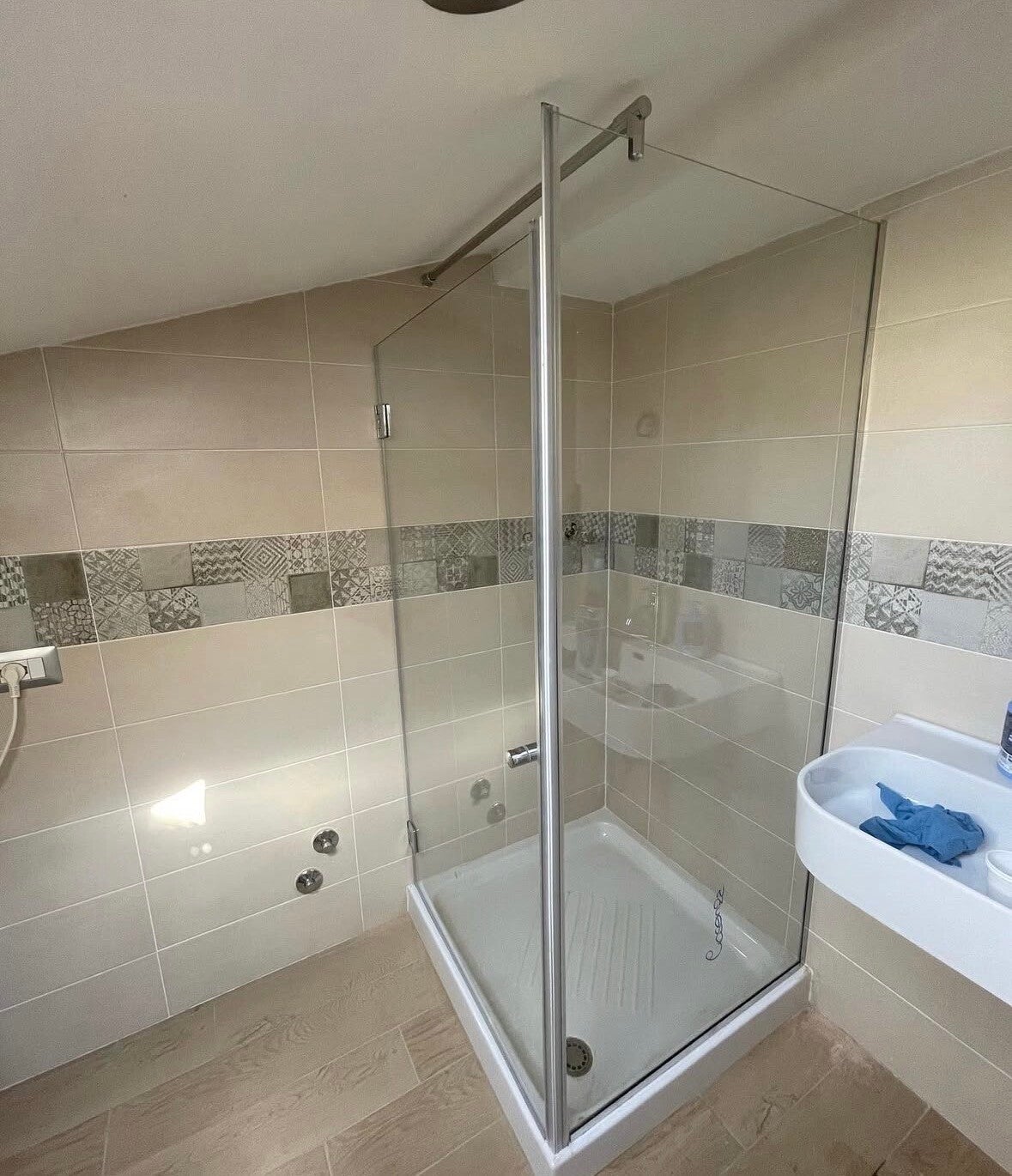 • Estetica e Praticità: Senza porte o guarnizioni complesse, la Walk-In è la soluzione più facile da pulire. La nostra posa in opera assicura che il vetro sia perfettamente a piombo, diventando un elemento architettonico invisibile ma estremamente robusto.